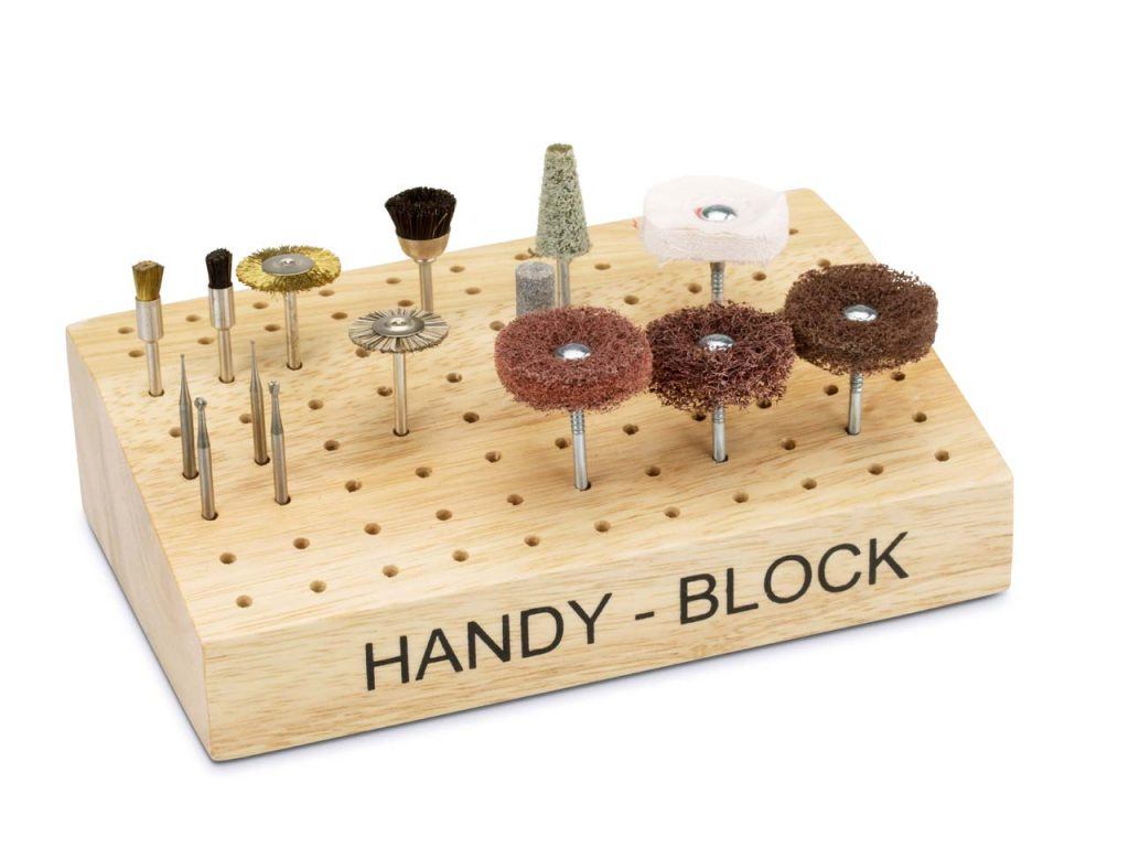 This holds up to 88 drills and burrs and has a slanted surface, making it as easy as possible for you to select your tools.