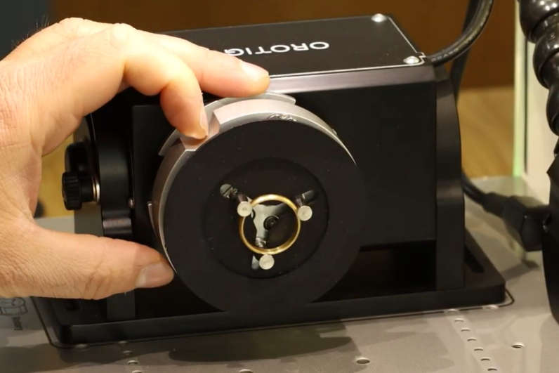 - Select whether you’re engraving the inside or outside of the ring using the rotary device, then position your ring in place.