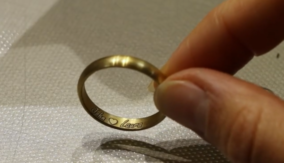 - When engraving is complete, remove your ring to reveal the finished result—clean, crisp and perfectly aligned.