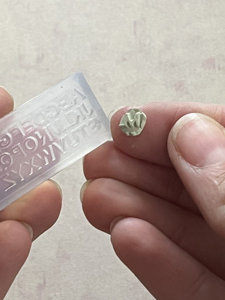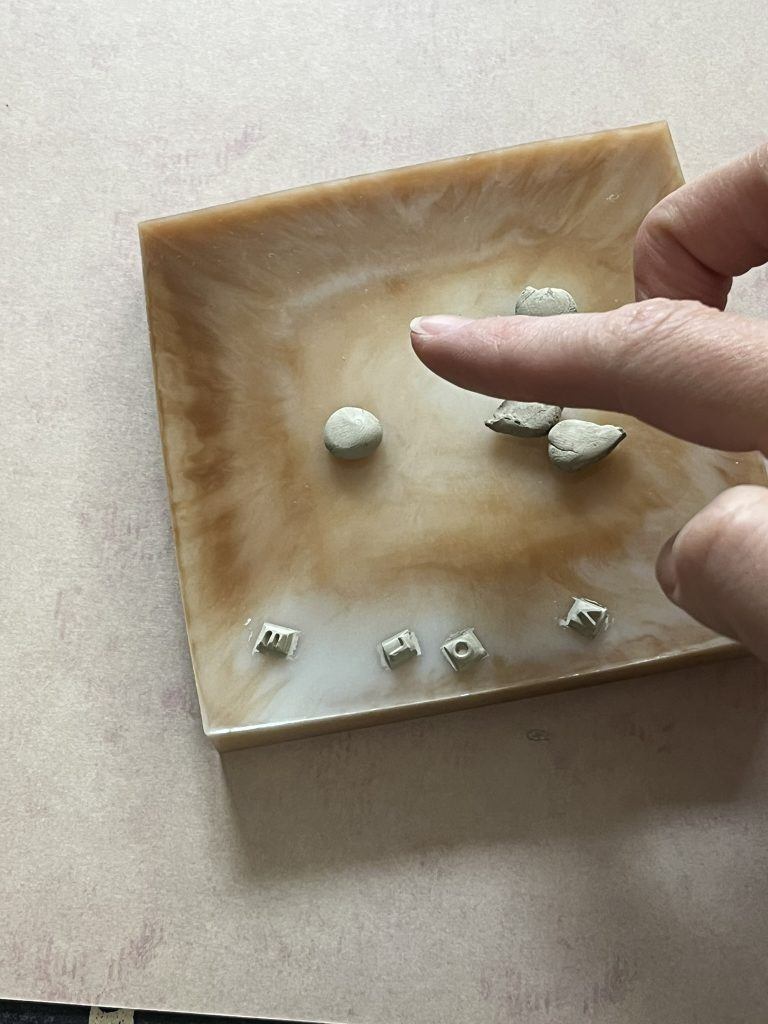 Take one piece of clay split this into four smaller pieces, push the first piece into the letter of the mould and carefully remove it.