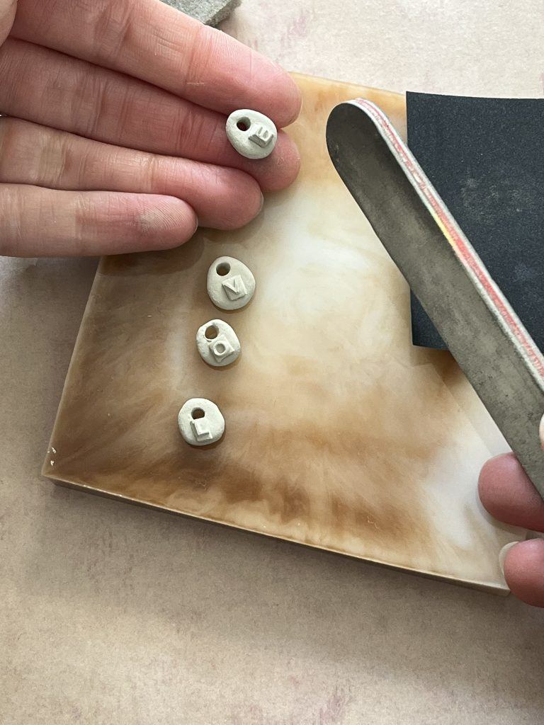 Place the clay with the letter shape onto a non stick surface and using a knife of scalpel, remove the excess clay around the edges. Repeat until you have all your letters.