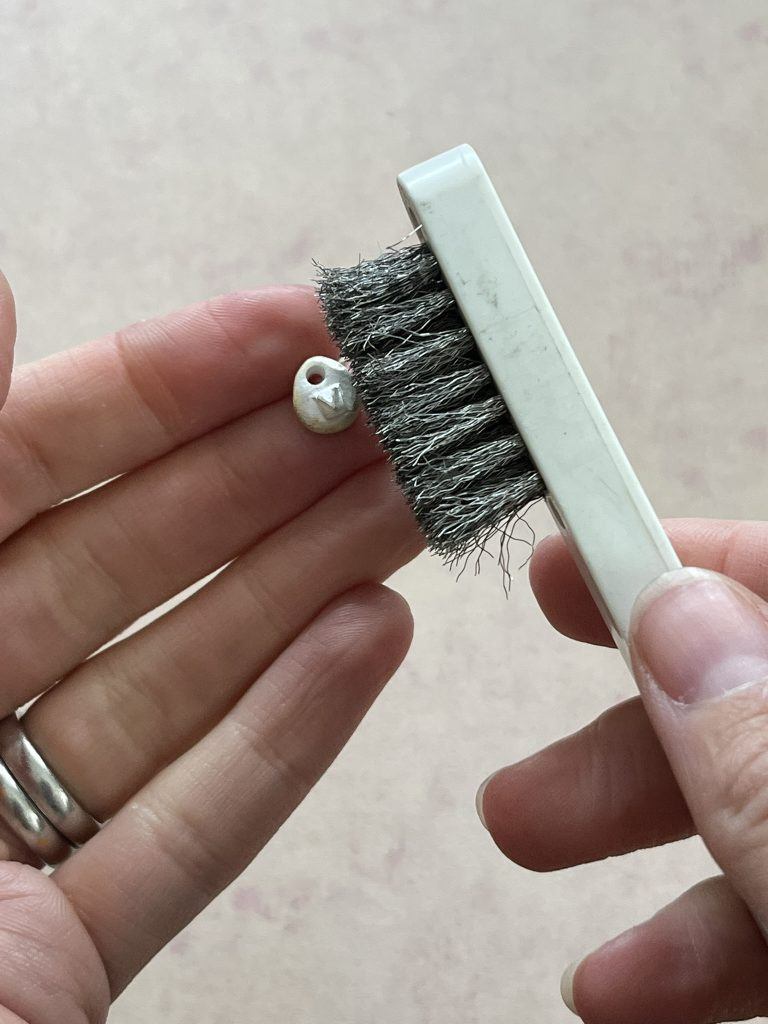 When cool, use a metal brush to bring out the detail and a polishing cloth to bring out the shine of the silver.