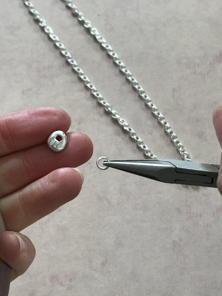 Note: Bare in mind that the holes on your charms need to be close enough to the top that after firing and shrinkage the 5mm jump rings will be able to thread through to attach the charms to your chain necklace.