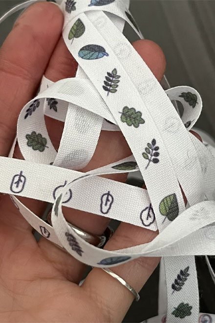 You can also create a continuous design; simply enable continuous marking in the editor settings on the app and your imprint will repeat seamlessly until the COLOP e-mark go is lifted. When printing on ribbon use the COLOP e-mark go Ribbon Guide (999 EM03).